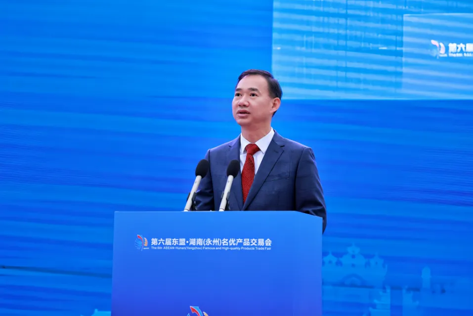 朱洪武代表市委、市人大常委会、市政府、市政协和全市人民,向交易会的举办表示热烈的祝贺,向出席活动的海内外来宾表示诚挚的欢迎,向长期以来关心和支持永州事业发展的社会各界朋友表示衷心的感谢。他说,作为湖南对外开放的“南大门”、对接东盟的“桥头堡”,永州坚决贯彻落实习近平总书记关于对外开放的重要论述,全面对接区域全面经济伙伴关系协定,围绕建设对接东盟开放合作先行区,坚持向南向海向外开放发展,永州与东盟贸易往来日益密切,贸易规模不断扩大。2022年,永州对东盟进出口105亿元、增长152.4%,与东盟10国建立了经贸往来关系。永州将全力以赴做好展会各项保障工作,努力让本届交易会办出特色、办出成效。