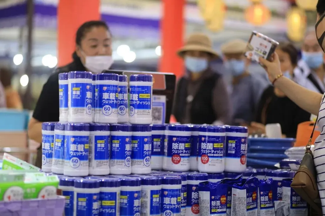 在跨境电商展区,进口日化商品受到了市民们的喜爱,销售场面十分火爆。大连爱迪喵科技有限公司董事长徐莉介绍,本次参展他们带来了200多个品类的商品,其中,海藻盐、日本酱油、化妆品等不少产品都是独家代理,能让大连市民不出国就买到丰富的进口产品。