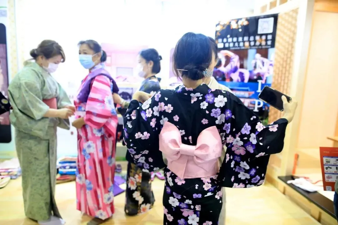 在文旅专区,大连日本商工会高级经理石冈女士带来的日本浴衣吸引了不少市民拍照打卡,在切身体验的同时,市民们还了解到了日本的传统文化。“我在大连已经生活了12年,大连市民十分亲切,我喜欢美丽的大连,希望通过浴衣体验,让大连市民也感受到日本传统文化的美。”