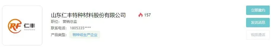 为了能使展会的专业观众提前了解展商信息,主办方特别推出了“2021中国国际特种纸展览会线上展示平台”,展商信息、展品信息提前预览,展会现场精准对接。展示平台可以看到什么呢?展商信息、采购信息、展品信息一网打尽,还可以立即邀约发送消息,快快点击下方进入线上展示平台吧。