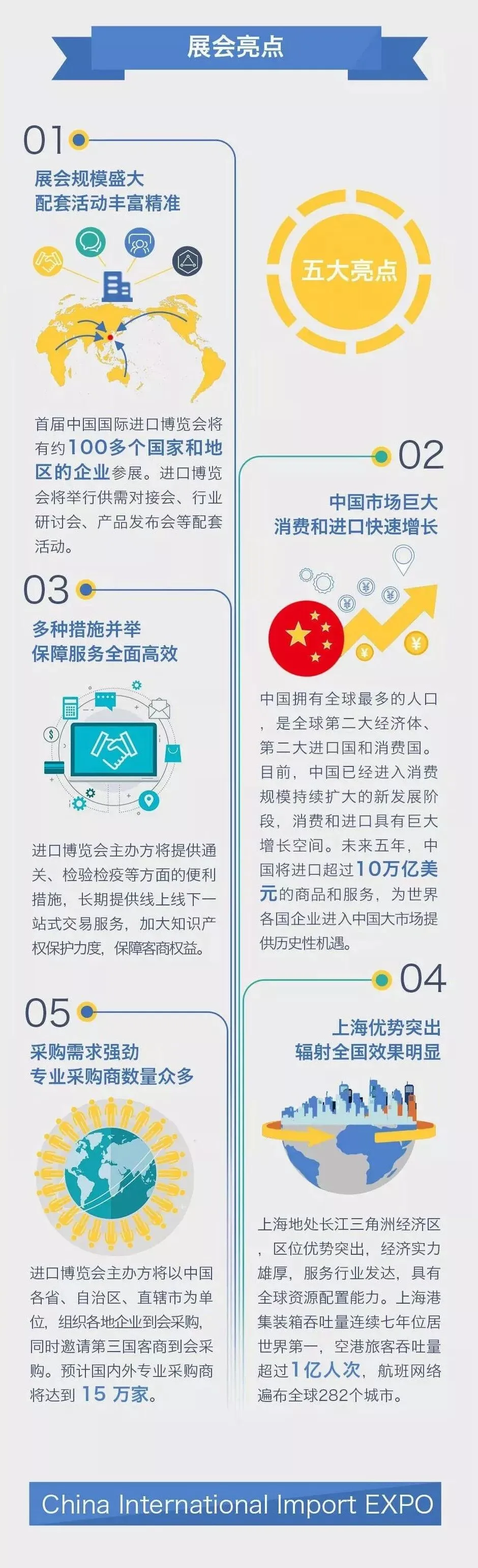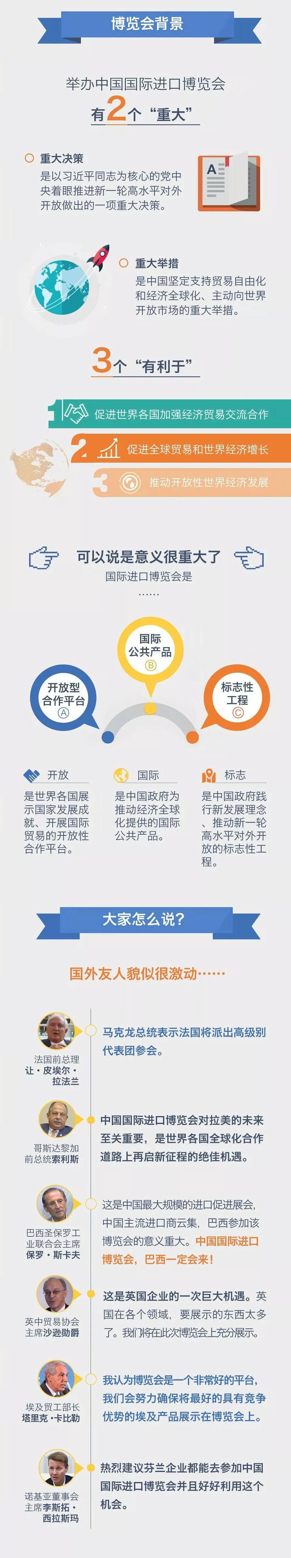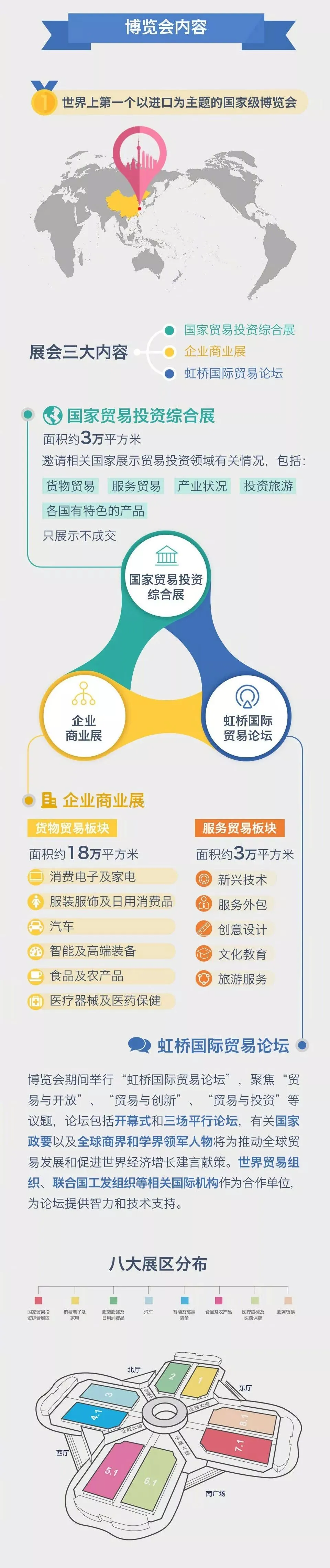 首届中国国际进口博览会将于11月5日至10日在国家会展中心(上海)举行,届时,百余个国家和地区的企业参展,党和国家领导人以及受邀国家元首、政府首脑和国家组织负责人将出席相关活动,规格高、规模大、活动多。