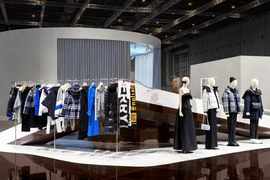 展台内,博柏利展示了其全新外套系列。其中的功能性精品,旨在驾驭从户外探险到城市探索等各类冒险。全新夜色格纹焕新演绎博柏利标志性图案,呈现亮白繁星点缀深炭蓝夜空的唯美意象,致敬对自然的热忱。新季配色活力装扮羽绒服、柔软绒头外套、衬衫和针织单品。