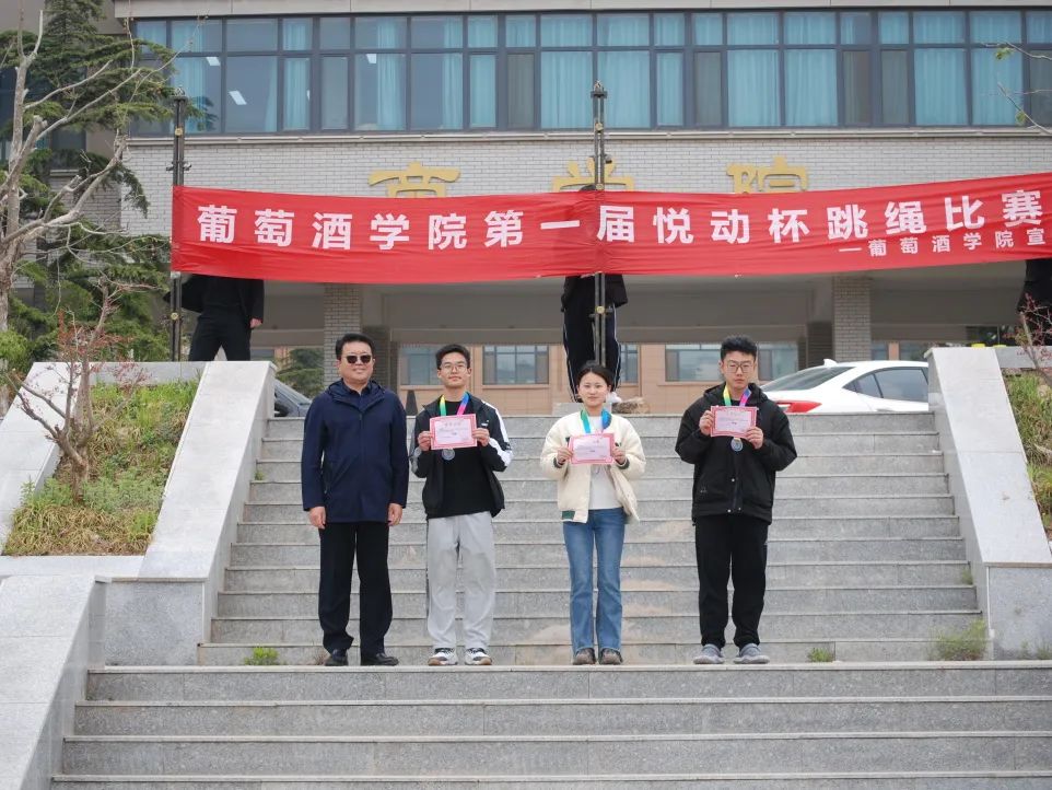 为进一步推动校园体育活动,促进同学们的身心健康,锻炼同学们的身体,培养同学们团结、拼搏的精神,4月25日中午12:20,葡萄酒学院于四五教小广场举行“悦动杯”跳绳比赛决赛及颁奖仪式。