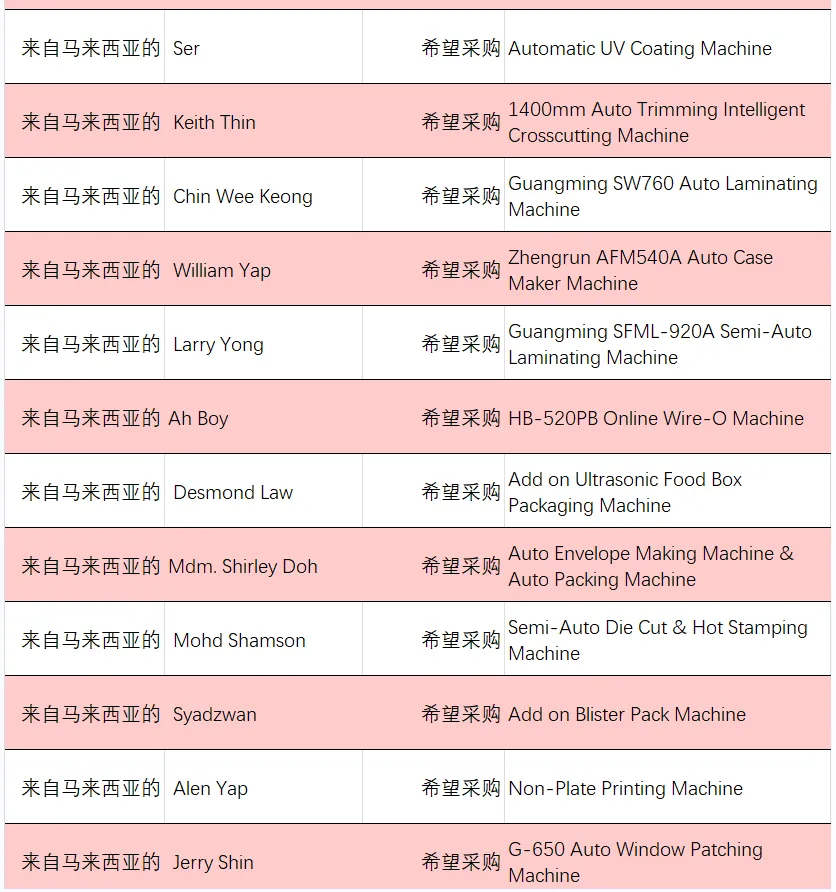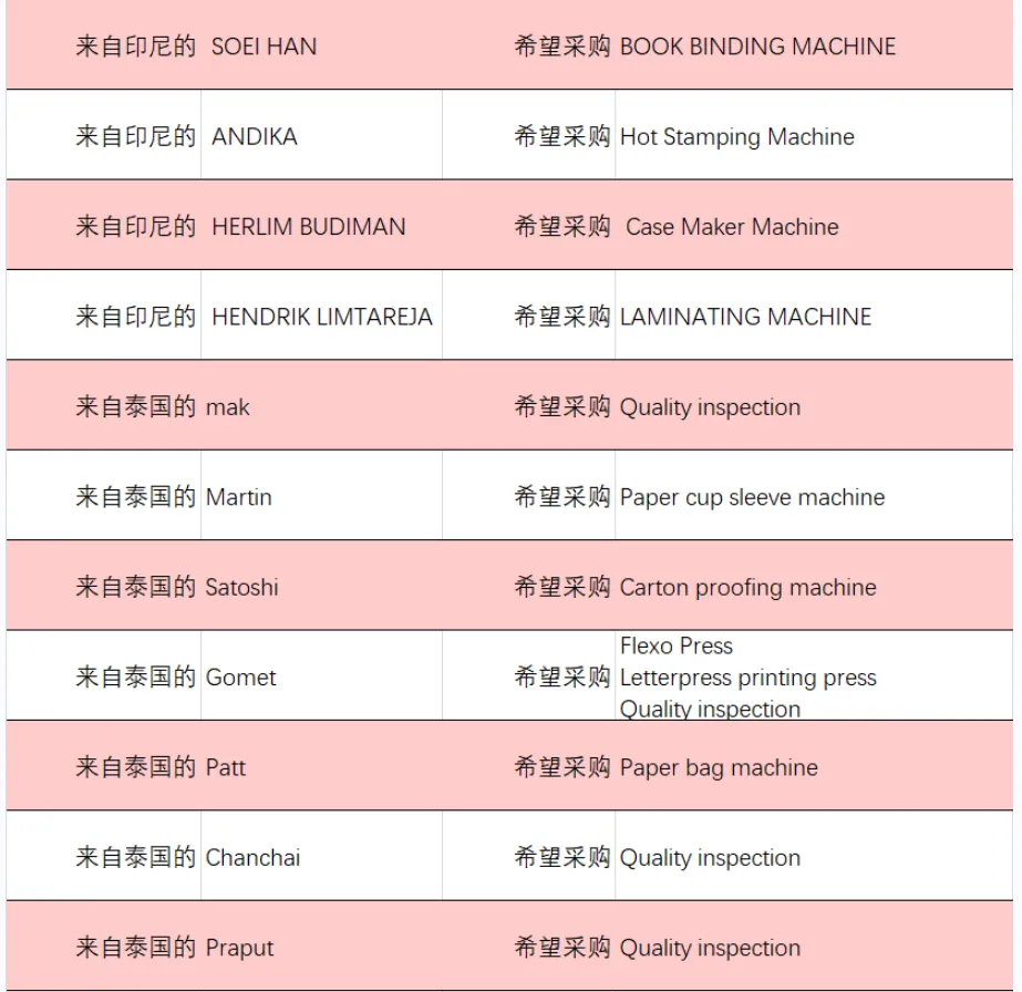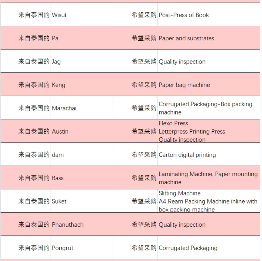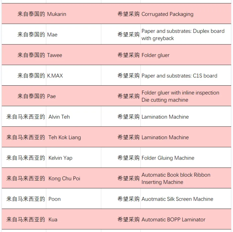 本次跨境对接会向东南亚印包企业发出邀请后,我们陆续收到来自泰国、马来西亚、菲律宾、印度尼西亚、越南的200余个专业买家发来的采购需求。