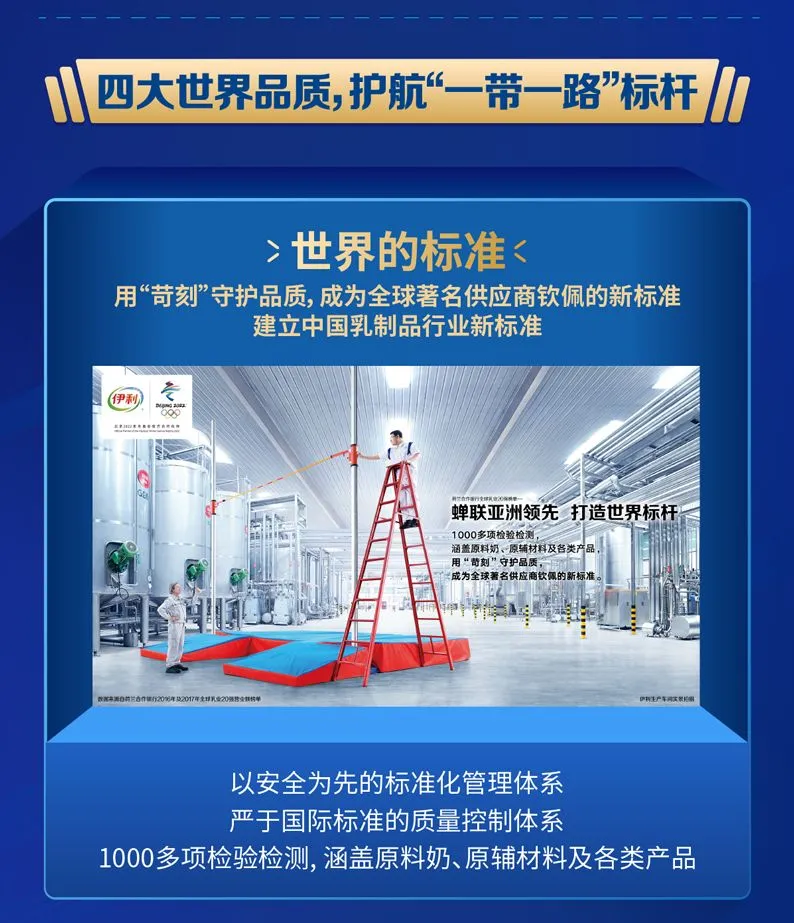 严苛标准带来的是牛奶品质的提升,富含更多天然乳蛋白和高钙,超出普通牛奶更多,在营养和品质方面已领先国际标准。本次能代表新西兰企业回国参加高精尖商品齐聚的展会,伊利靠的是:以安全为先的标准化管理体系,严于国际标准的质量控制体系,1200多项严苛的检验检测。伊利用这种方式守护着品质。