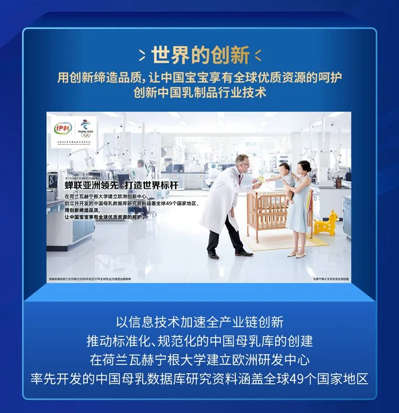不管是以信息技术加速全产业链创新,还是推动中国的母乳库的创建,再到欧洲创新中心的建立升级,伊利无不是在用“创新”,让宝宝享有全球优质资源的呵护;也为旗下金典、安慕希、金领冠、畅轻、每益添等明星产品提供了坚强有力的资源、创新和市场助力,使伊利持续领跑中国乳业市场并进入全球乳业领先阵营,国际影响力不断扩大。