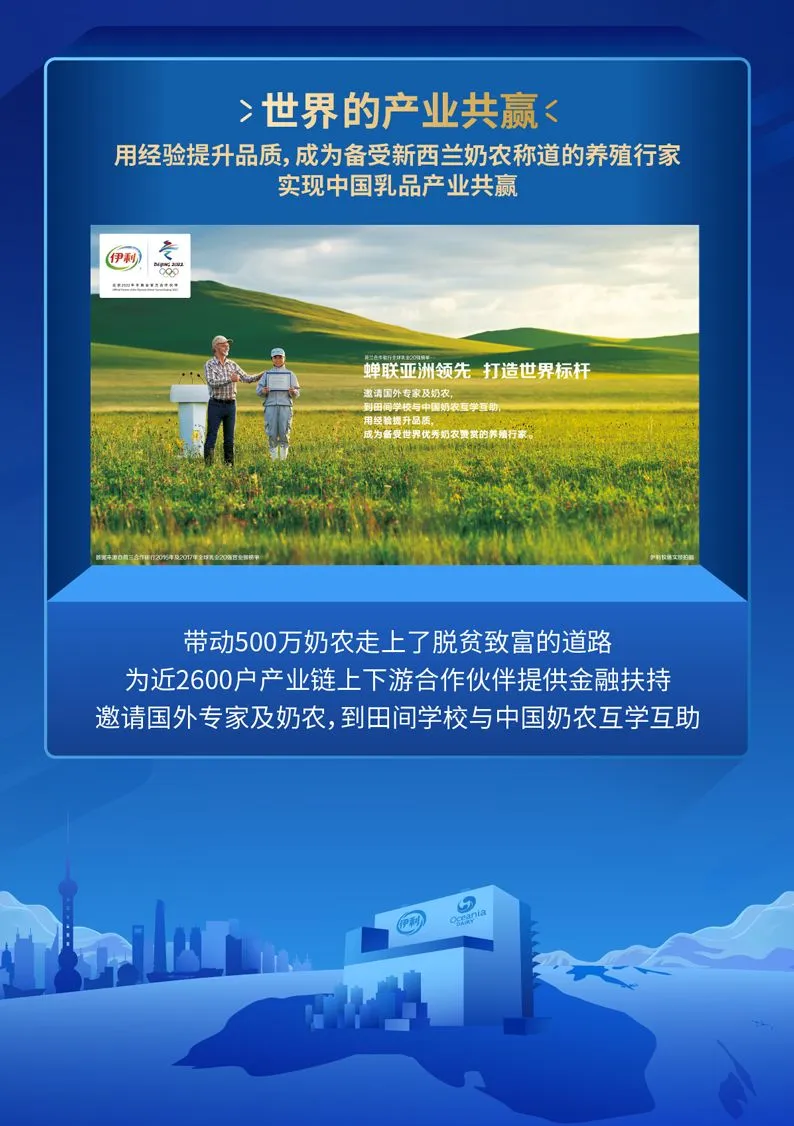 据了解,大洋洲乳业公司覆盖科研、生产、深加工、包装等多个领域。伊利带动500万奶农脱贫致富外,还为2700余户产业链上下游合作伙伴提供金融扶持,并邀请国外专家及奶农到田间学校与中国奶农互学互助。伊利用经验提升品质这一行为,备受新西兰奶农称道。