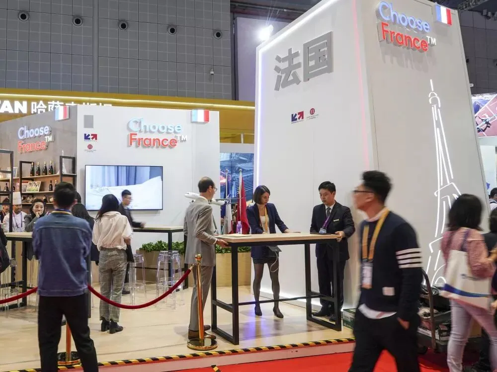 11月6日,参观者在第二届进博会法国国家馆参观。新华社记者 殷刚 摄