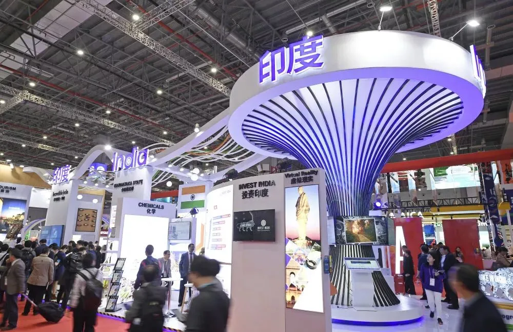 11月6日,参观者在第二届进博会印度国家馆参观。新华社记者 王鹏 摄