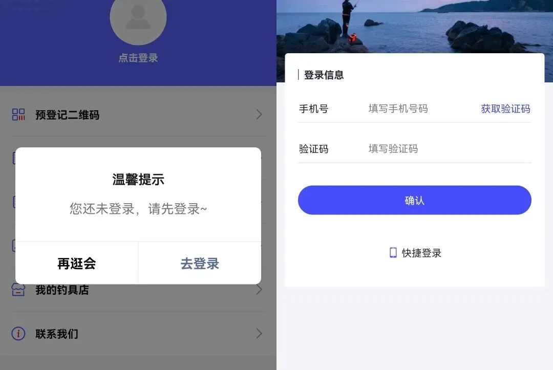 第2步:点击右下【我的】,在弹出的页面选择【去登录】,点【快捷登录】直接登录,也可以填写手机号,获取验证码,登录小程序。(已登录的用户可以略过此步骤)