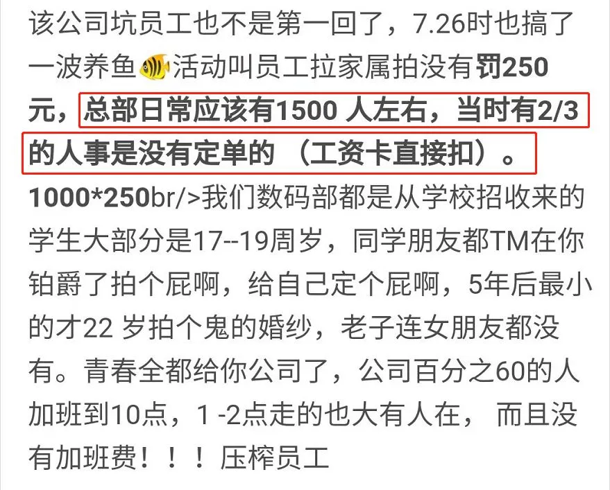 同时,据爆料人称,无论是不是销售岗都有“任务”在身,没有订单的直接扣钱。