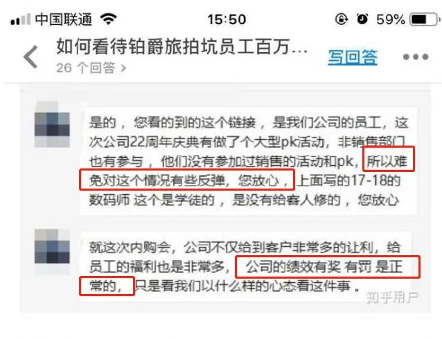 更加令人吃惊的是,铂爵旅拍官方称为了回馈员工一年多的辛勤工作举行了员工内购会(说亲属朋友打折,其实就是让员工拿亲友单给它刷业绩)。