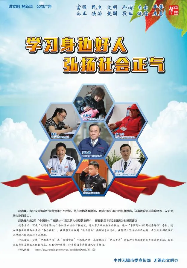 每个微信号仅限投票一次,每次五个类别各选一人,投票结果将作为二季度“无锡好人”当选的依据之一。