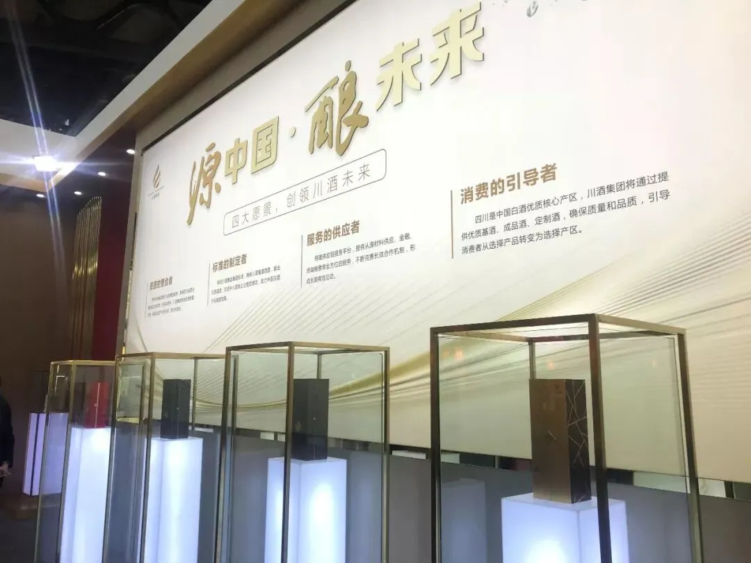 就在这座人流不断的展馆里,微酒记者发现,展馆正中间展板上的六个字,清楚地展示了川酒集团的雄心——创领川酒未来!