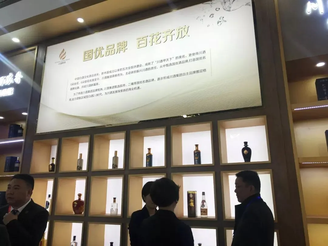 开幕式当天,酒博会展馆正式亮相,川酒集团与茅台、五粮液、泸州老窖等知名酒企同处中国白酒精品馆。
