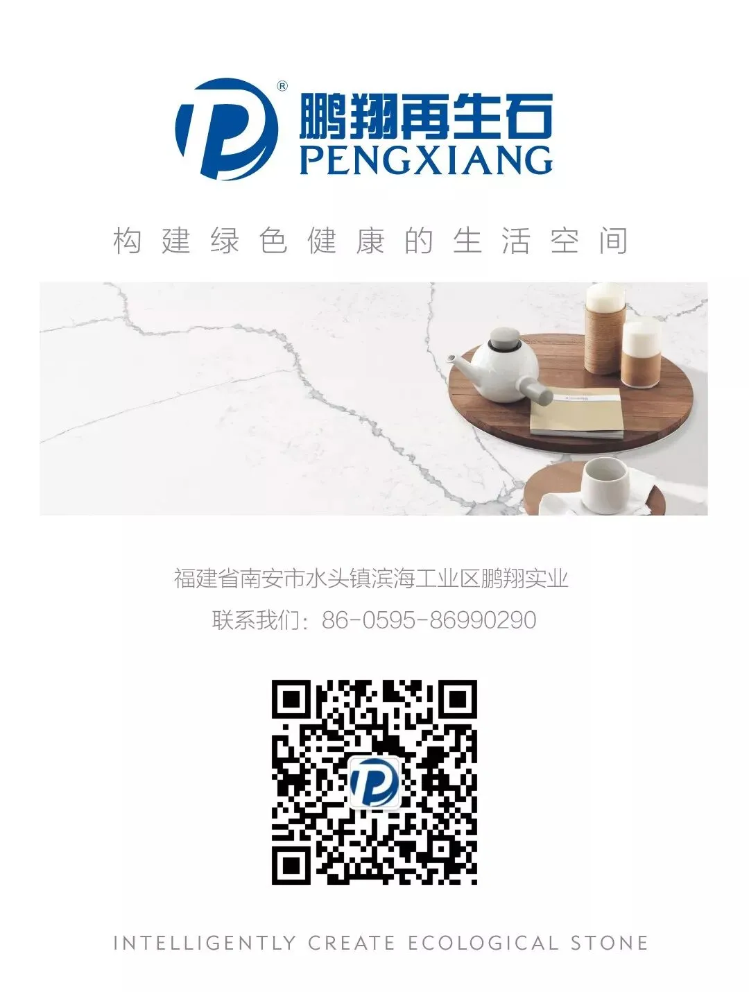 在产品方面,推陈出新,不仅在品质方面首屈一指,而且在绿色环保方面更是独树一帜,鹏翔再生石以其卓越的品质,不凡的技术,引领着人造石的时尚风潮,相信在2019年的中东迪拜五大行业展(BIG5),鹏翔将继续向全世界展示中国再生石的独特之美。