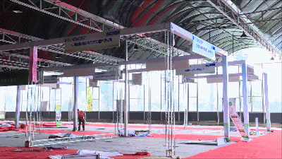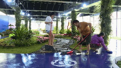 在成都展馆内,部分花草正在作调整