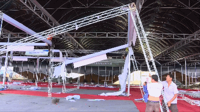 工作人员正在仔细的拆展