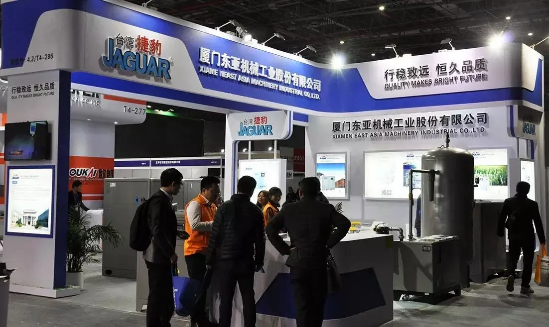 台湾捷豹(展位:T4-286)作为一家有着30年历史的空压机制造商为我们带来了新型永磁变频二级压缩,直联传动,永磁变频同轴等三款空压机及相关后处理设备、压力容器。除了推介产品,台湾捷豹更主要是进行企业整体形象的推广,把“恪守品质,行稳致远”的捷豹精神介绍给大家。