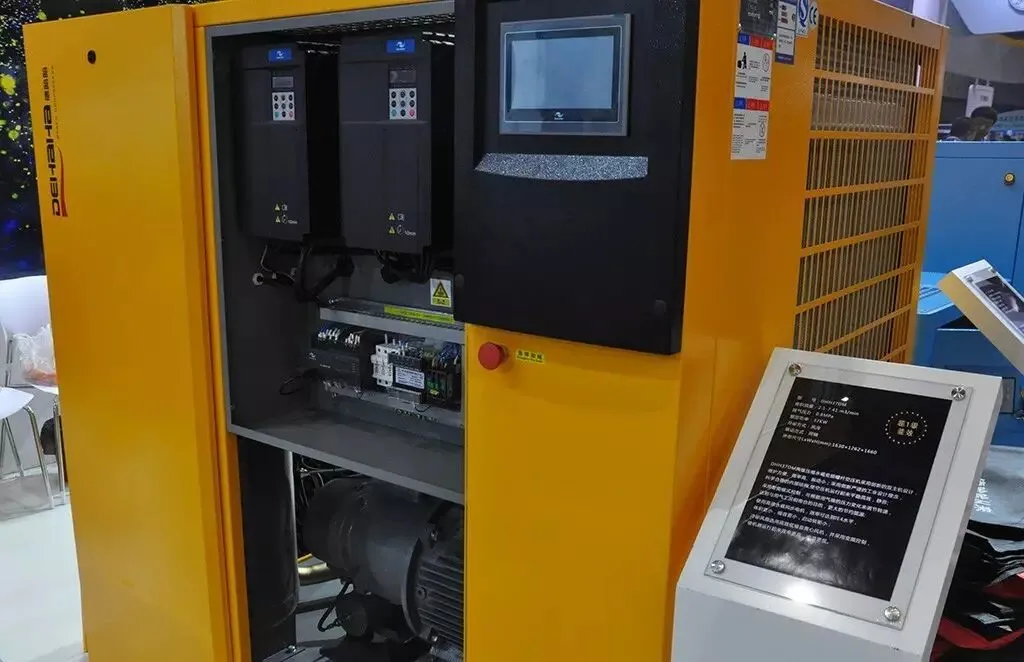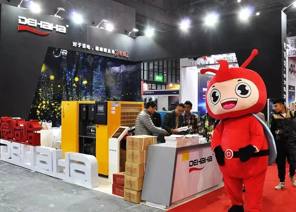 正浏览间,一旁走来个憨态可掬的卡通人偶把观众带往下一展台。熟悉的人都知道,这个人偶就是德哈哈的“哈宝”。德哈哈压缩机(展位:T4-272),节能从不将就,于是这次一下推出了三款DM系列永磁变频螺杆空压机,其中DHH37DM两级压缩永磁变频螺杆机已超过国家一级能效标准!