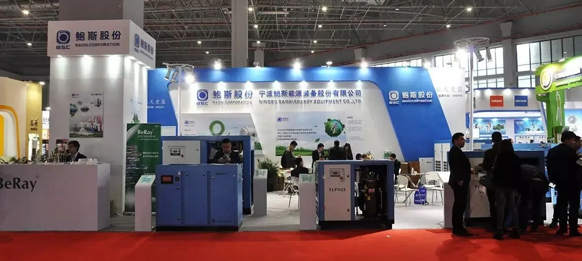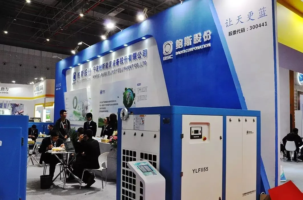 在6号展馆内,宁波鲍斯(展位:T6-145)的开放式展位让他们的产品能更亲近观众,贴近客户,蓝色调的背景正如鲍斯空压机提倡的“节能,让我们天空更蓝”。除了主推超一级能效的双极永磁变频螺杆压缩机外,宁波鲍斯还在此次博览会上重点推荐了他们的合同能源管理服务系统,不断有客户代表前来询问洽谈。