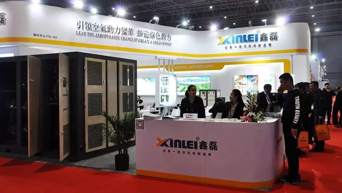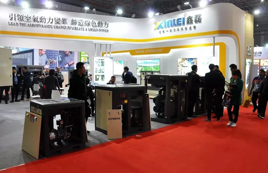 “世界一流空压机制造商”温岭市鑫磊空压机有限公司(展位:T6-161)宽敞的展位上,“引领空气动力变革,缔造绿色动力”的标语格外醒目。鑫磊空压机这次来到展会,带来了年初刚通过国家项目科技成果鉴定的“两级压缩永磁变频螺杆式空压机”介绍给大家,此外,异步一体式螺杆空压机和永磁同步一体式主机也格外受到参观的代理商的青睐。作为发展20余年的空压机制造企业,鑫磊规模庞大、产品门类齐全,自然广受欢迎!