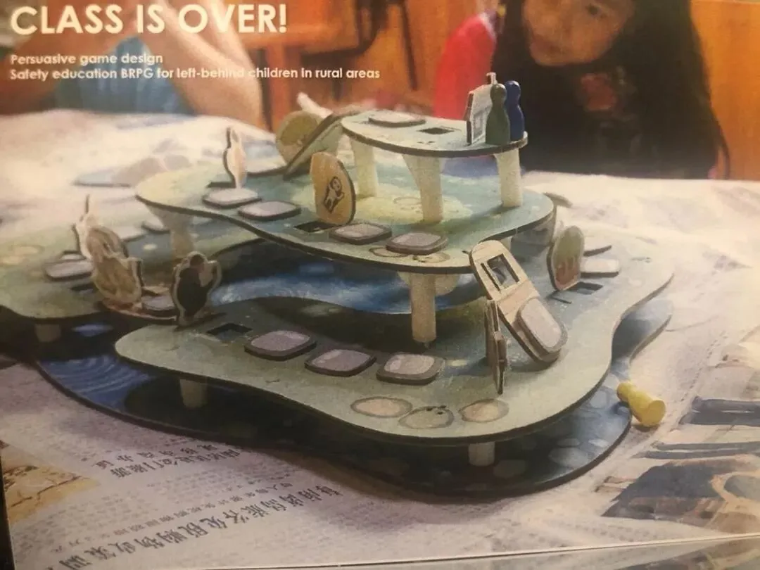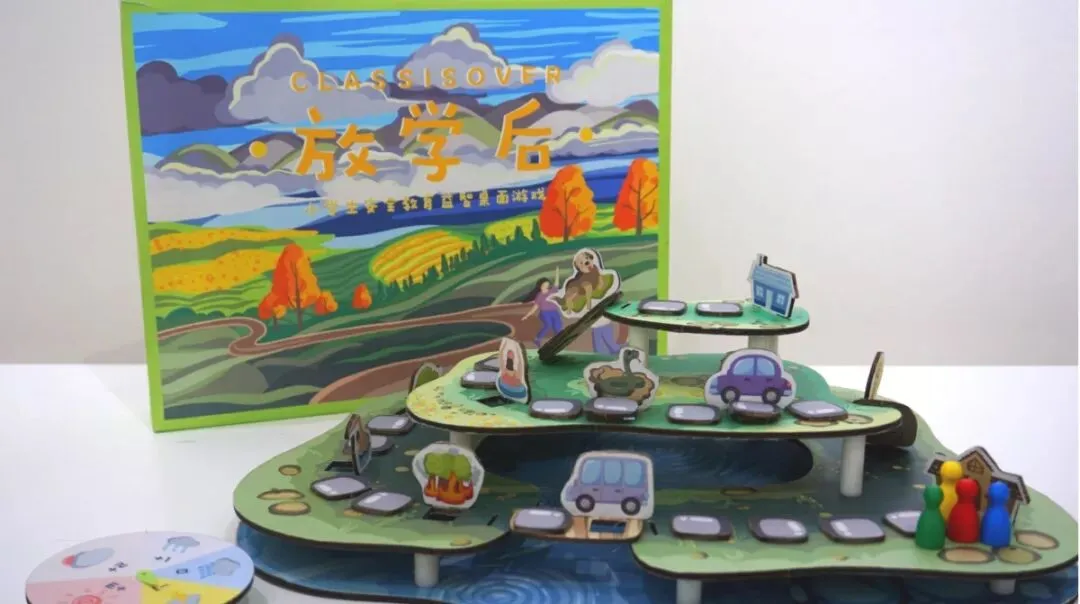 “Class is over”乡村儿童安全桌游,旨在通过游戏化设计引起儿童对学习安全知识的兴趣,同时开发他们的动手能力与创造力。相对于传统平面桌游,“Class is over”造型灵感来自于山区梯田,从视觉上显得更加丰富有趣。其搭建环节让儿童自己制作属于自己的桌游,引发兴趣;此外模块化设计使得游戏每次的构建方式不一样,每次都可以生成新的棋盘,使游戏更加多样化。