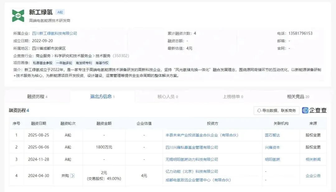 2024年:8月28日,完成新一轮融资,由中国石化恩泽基金与愉悦资本共同投资。