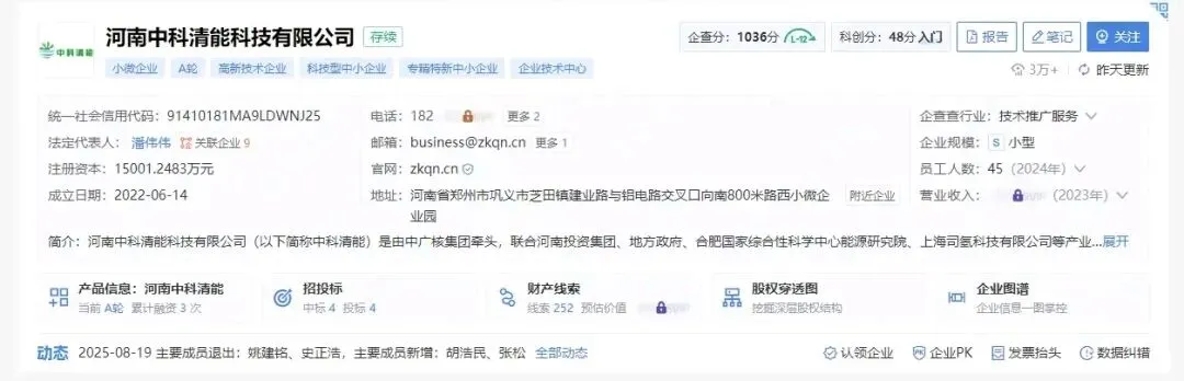 中科清能成立于2022年6月,由中国广核集团联合合肥综合性国家科学中心能源研究院、河南投资集团等产业链优势资源方共同发起设立,前中广核研究所所长潘伟伟任首席执行官。中科清能致力于为聚变、绿色氢能、航空航天等领域提供氦液化、氢液化等低温装备及产业链运营,目标是为中国未来能源产业发展提供关键支撑。