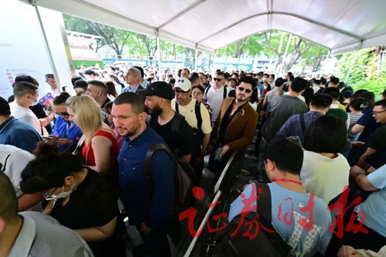 同时,在排队过程不时就能看到大量海外采购商前来。