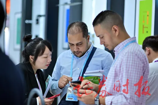 在进入各个主题展馆后,海外采购商也立即奔向各个意向产品展台,热切地与中国企业展开会谈。