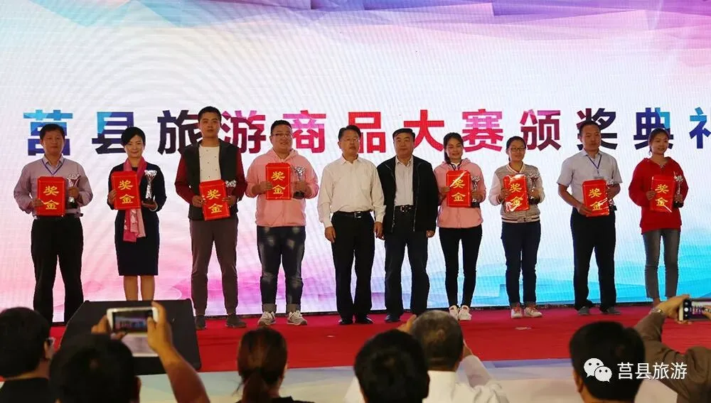 开幕式上揭晓了本次大赛产生的旅纪念品类金/银/铜奖/优秀奖、旅游食品类金/银/铜奖/优秀奖、旅游用品类金/银/铜奖/优秀奖、创新设计类金/银/铜奖四大奖项,推出了来莒不得不购的旅游商品。