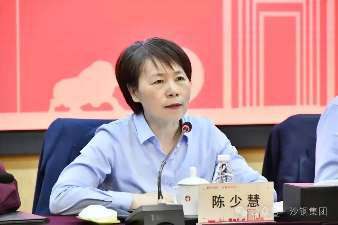 沙钢集团董事局常务执行董事、副总裁兼总工程师,沙钢钢铁有限公司董事长陈少慧主持会议并就贯彻落实会议精神提出相关要求。