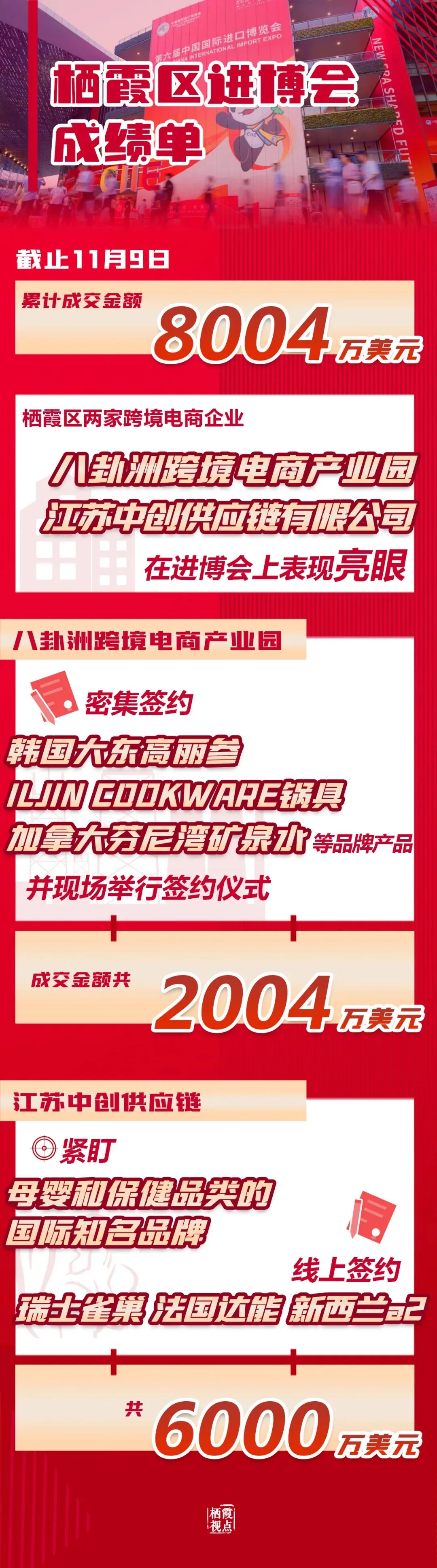 今年以来,栖霞区积极推动跨境电商外贸新业态创新发展,鼓励发动企业参加广交会、华交会、进博会等各类展会,以切实举措助力企业拓展国际市场。第六届进博会即将圆满落幕,进博红利将持续释放。
