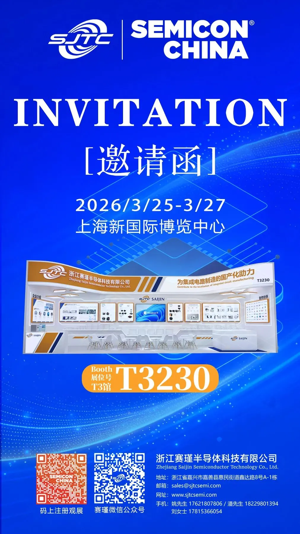 赛瑾半导体诚邀海内外业界同仁莅临 T3320 展台,期待在展会现场与您面对面深入交流,探讨行业前沿趋势,挖掘新机遇。