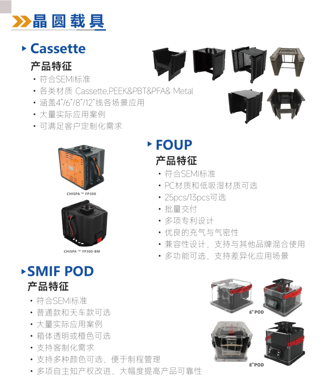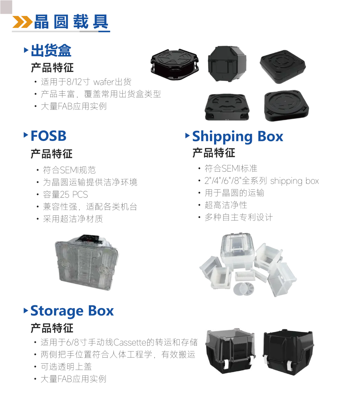产品覆盖广:拥有完善的产品矩阵,基本覆盖半导体行业载具及配套设备全应用场景。