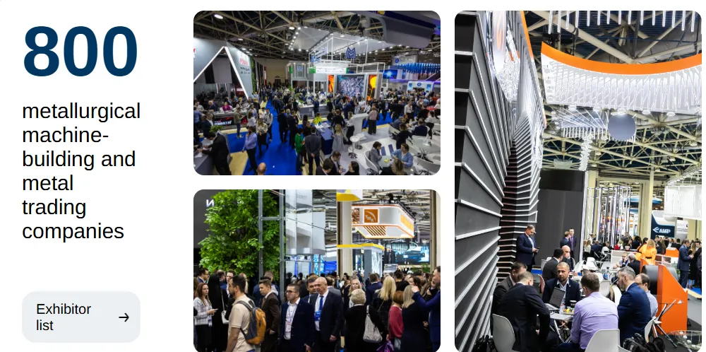 ? 展会硬实力拉满:已成功举办31届,上届汇聚800+参展商(400+海外参展商)、30000+参观者,展览面积超45000㎡,覆盖4个展馆+室外空间!MMK、TMK、Severstal等俄顶尖冶金企业悉数参展,4000+展台工作人员、数千场洽谈会,签约合作高效直达。