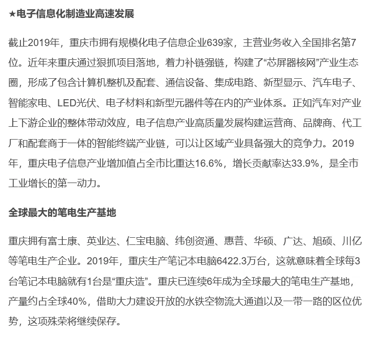 汽车产业是重庆国民经济的重要支柱产业。重庆已形成以长安体系为龙头,10多家整车企业为骨干,上千家配套企业为支撑的“1+10+1000”汽车产业集群。