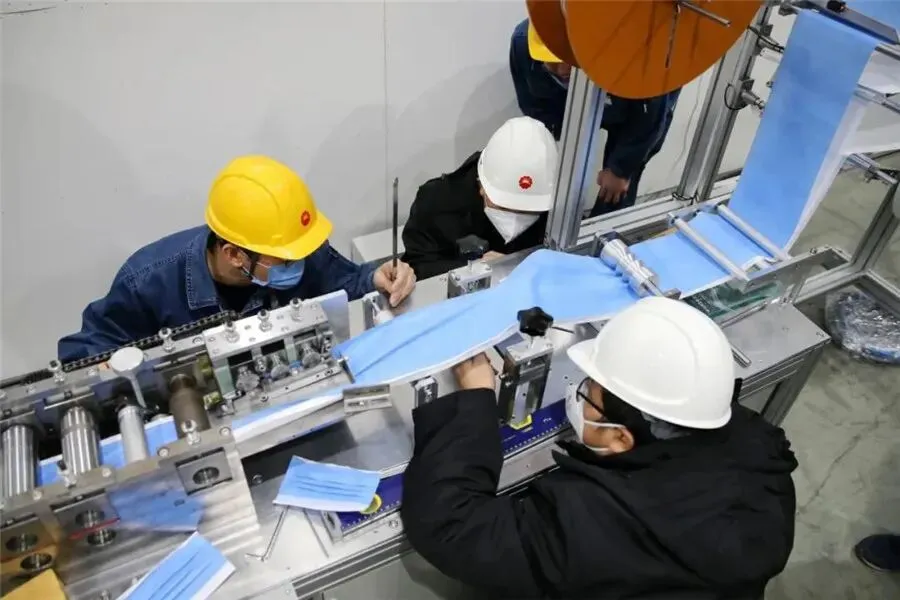 由于时间紧迫,部分口罩机制造商又是临时转产,造成设备到达建设单位现场后无法开车成功,有的缺少零部件,有的组装粗糙不出产品。面对种种困难,各单位毫不气馁,紧急向厂家联系补货,有些小件自己加工,24小时现场攻关,一步一步调整,一点一点尝试,终于在规定时间调试成功,确保了口罩生产线及时投产。