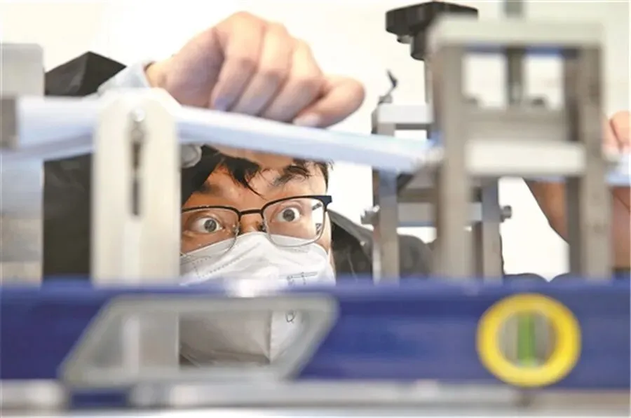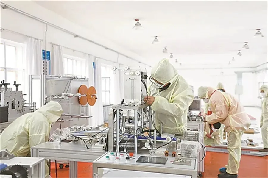 大庆油田员工对口罩自动生产线进行精细调试 许书晨 摄