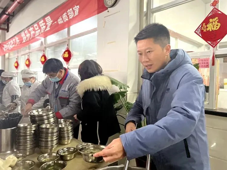 “喝碗热汤吧,暖和暖和再吃饭。”孙彭一边说一边为同事盛汤。过节期间,他希望在岗的员工都能吃好喝好,在企业也能感受在家一样的过年氛围。