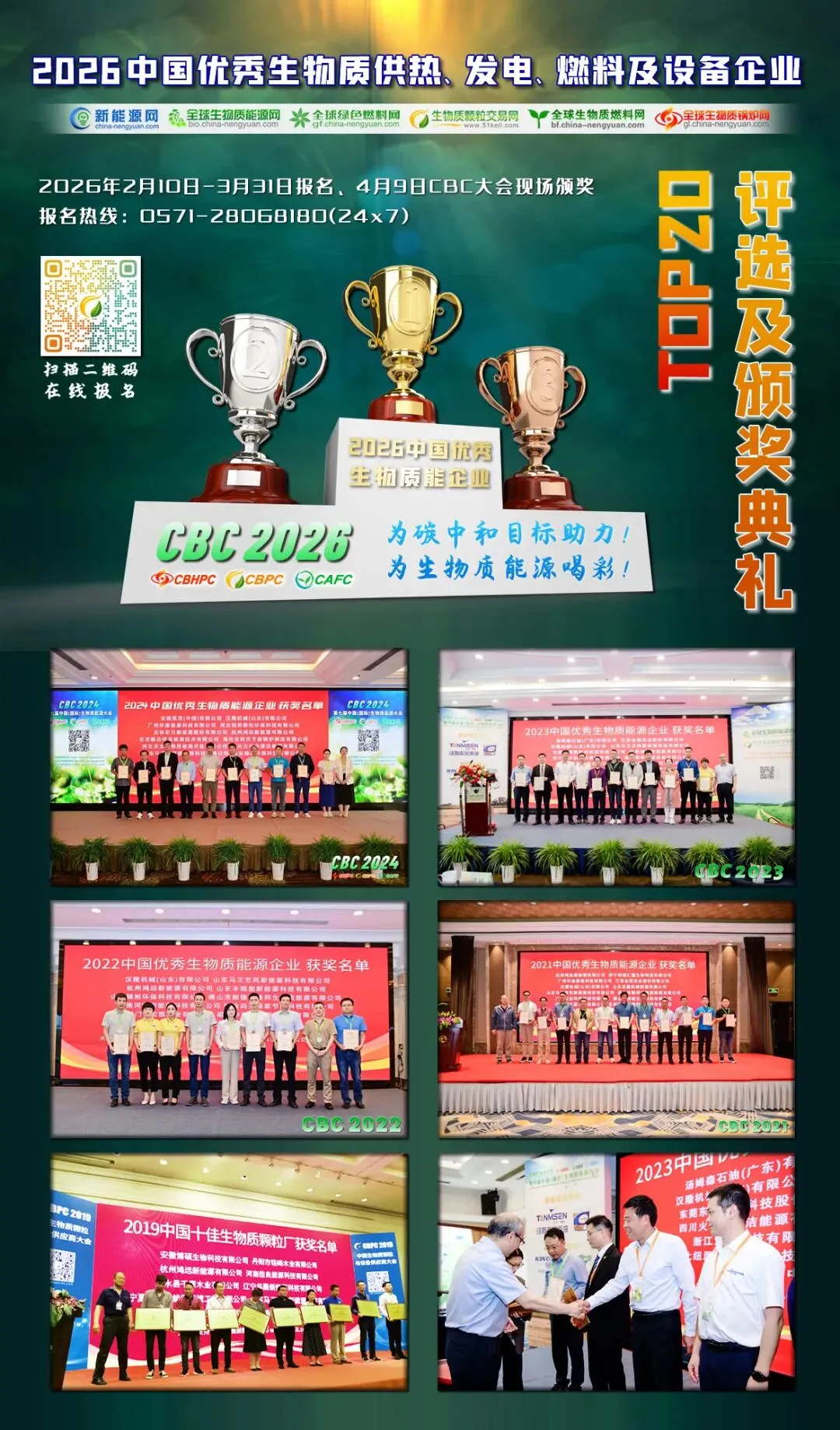 2、甄选阶段:CBC 2026第九届中国(国际)生物质能源大会组委会汇同行业专家,根据企业提交的材料,经过综合评判共同甄选出20家优秀供热、发电、燃料及设备企业。