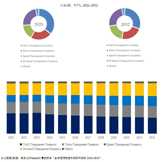 根据QYResearch调研团队最新报告“全球透明陶瓷市场报告2026-2032”显示,预计2032年全球透明陶瓷市场规模将达到2亿美元,未来几年年复合增长率CAGR为9.7%。
