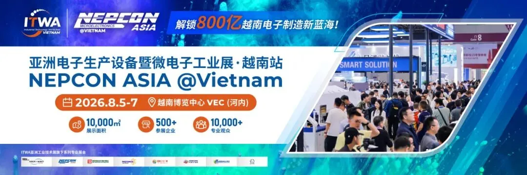 随着越南电子制造业的快速发展与产业升级需求日益迫切,为响应当地及东南亚企业的发展期待,NEPCON ASIA正式升级布局越南市场,将于2026年8月5-7日在越南河内举办 NEPCON ASIA@Vietnam ,亚洲电子生产设备暨微电子工业展越南站,为越南及东南亚电子制造企业带来前沿技术展示、广泛商贸网络与深度行业洞察,助力当地产业把握全球供应链发展机遇,加速智能化升级进程。