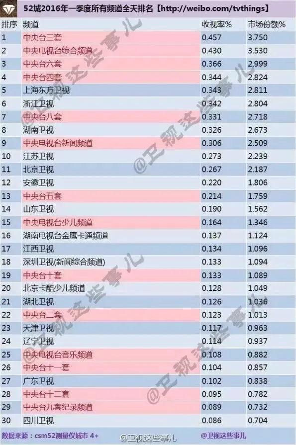 根据CSM52城收视数据,在2016一季度省级卫视收视表现上,东方卫视以0.834%高居晚间档第一,更是以0.341%的全天收视表现稳居第一,包揽全国双网冠军。