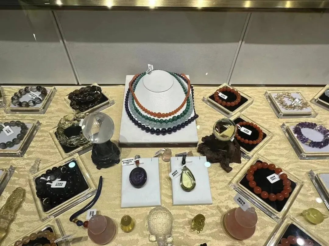 除了食品,晶莹剔透的东海水晶和款式多样的穿戴甲展柜设在了进门处,将“连云港礼物”全方位地展现出来。