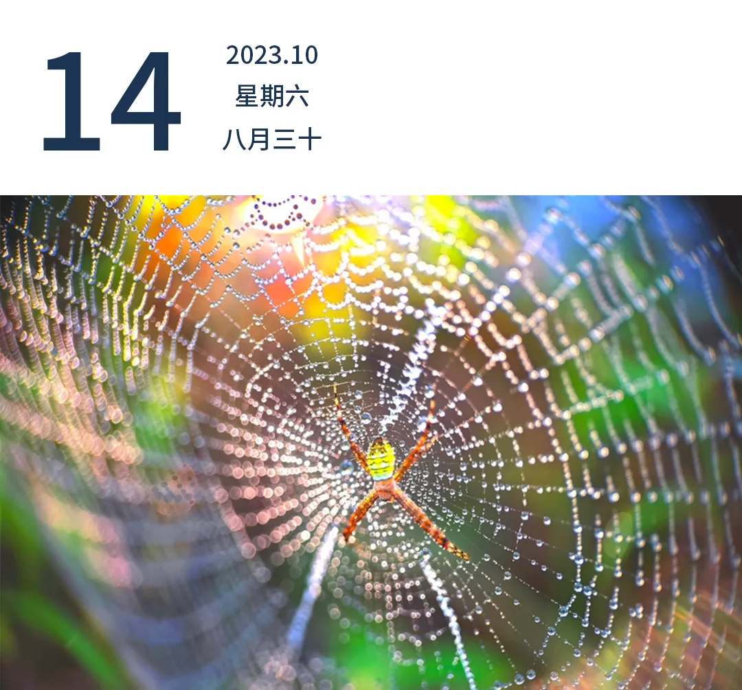 潮州磷溪野外,蜘蛛网上挂满了露珠,色彩斑斓美轮美奂。林文强 摄