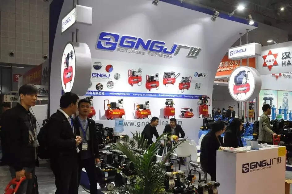 相比之下,来自金华的浙江广进机电展台虽不很大,却布局出一种大气的关怀感,他们这次派出了专业的技术和销售团队参加此次博览会,推出的空压机产品包括直联机、无油静音机等,还有相关配件供用户选购。