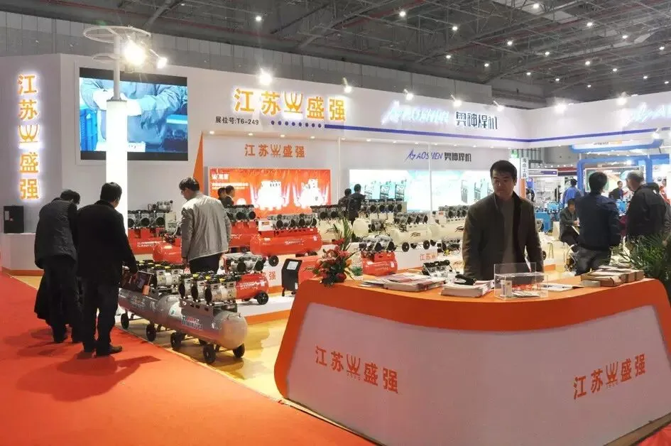 南通盛强机械的站台在展厅主通道旁,来参观的客商络绎不绝,公司旗下“风霸”和“双富”两个品牌的空压机都以静音无油为主要卖点,“精益求精,追求卓越”的产品总能留住客户的心。