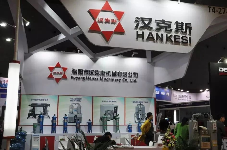濮阳汉克斯机械的精美展台紧邻着小编,他们也是在展会上主推干燥设备。水冷型冷冻式干燥机、冷冻/无热吸附组合式干燥机、风冷型冷冻式干燥机和微热再生吸附式干燥机成为本期主打,展台前的实物设备引起过往观众的浓厚兴趣!